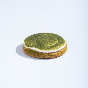 Кукис печенье с матчей — рассыпчатое и хрупкое, отличается лёгким травянистым вкусом и красивым зелёным оттенком, сливочный крем на основе маскарпоне