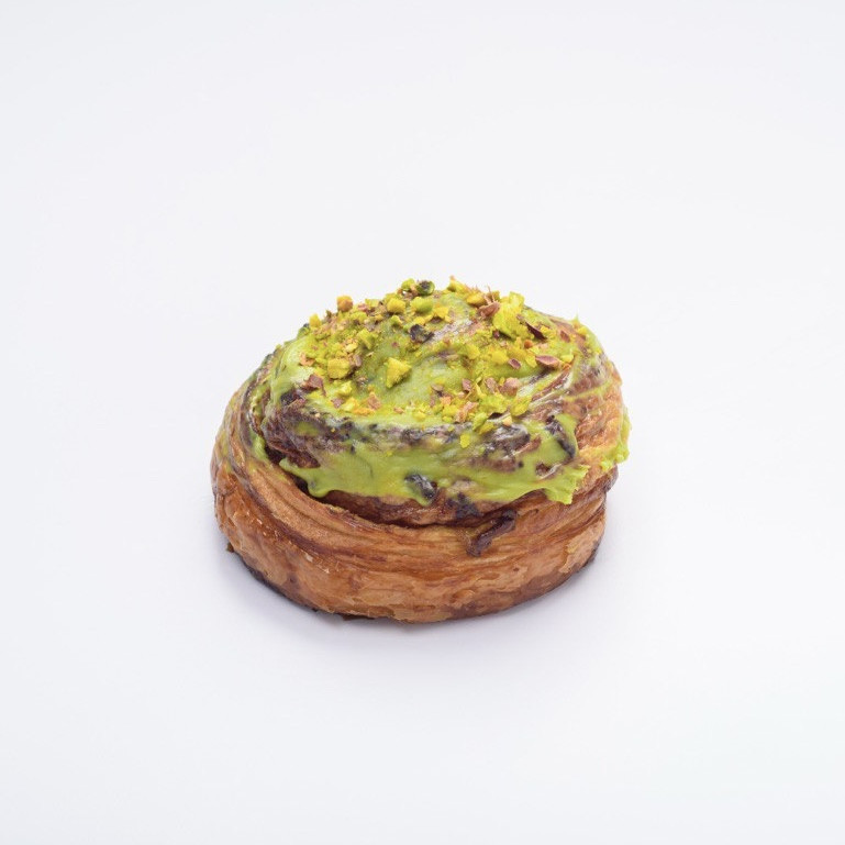 Тесто слоеное-дрожжевое (слоение сливочным маслом), прослоено заварным кремом с фисташковой пастой и дробленным орехом. Булочка пропитана сахарным сиропом и покрыта сырным кремом с добавлением фисташковой пасты.